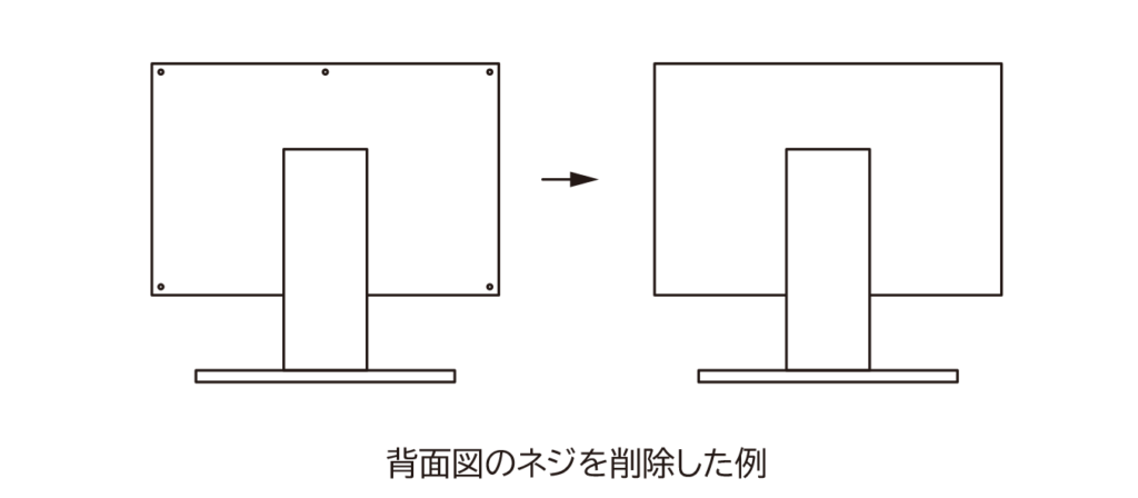 意匠図面作成の現場では、一般的にネジやデザイン要素ではない形状は削除して、なるべくシンプルな形状に表現するよう工夫しています。
