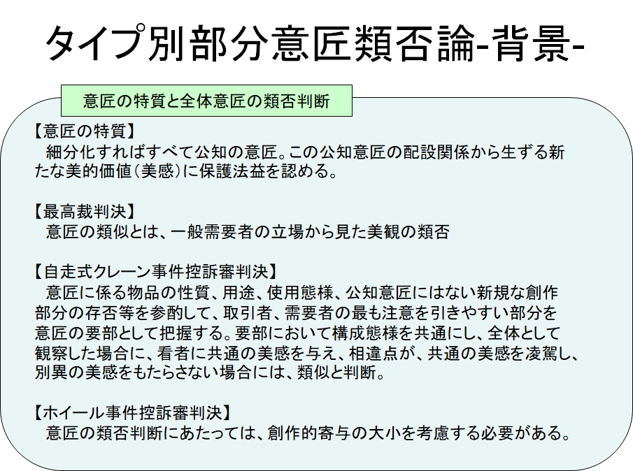 少し古い情報ですが、ユアサハラ法律特許事務所の青木博通弁理士が書かれた論文をベースに当職が図解風にアレンジしてみましたので、以下、ご紹介いたします(出展:DESIGN PROTECT 2001 No.50 Vol.14-3)。