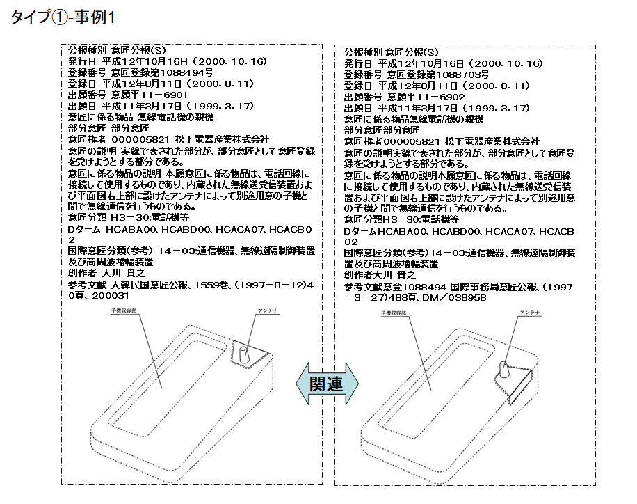 A:部分意匠は、実線で示した形態そのものに特徴がある場合と、実線で示した部分の配置に特徴がある場合があると考えられております。