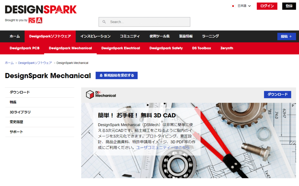 DesignSpark MechanicalはDesignSparkのホームページからダウンロードできます。